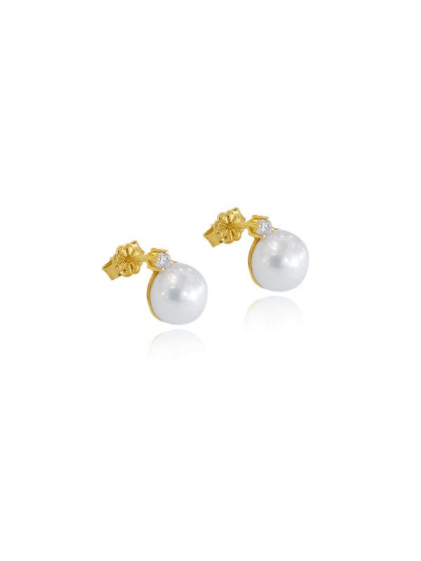 Σκουλαρίκια με μαργαριτάρια Fresh water δεμένα με χρυσό 14Κ και στολισμένα με μία πέτρα ζιργκόν το κάθε ένα. Ένα διαχρονικό κόσμημα που προσφέρει στυλ σε κάθε εμφάνιση.
